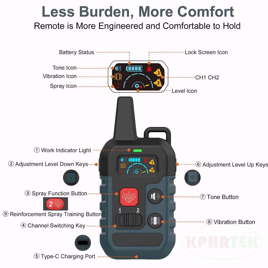 The T510 Spray Dog Training Collar comes equipped with an array of features, making it highly effective for teaching desired behaviors. The collar includes precise spray control, allowing for accurate corrections at the right moment. The built-in remote gives you full control up to 300 feet away, ensuring flexibility whether indoors or outdoors. Additionally, the eco-friendly refill cartridges are easy to replace, letting you focus on training without added hassle.